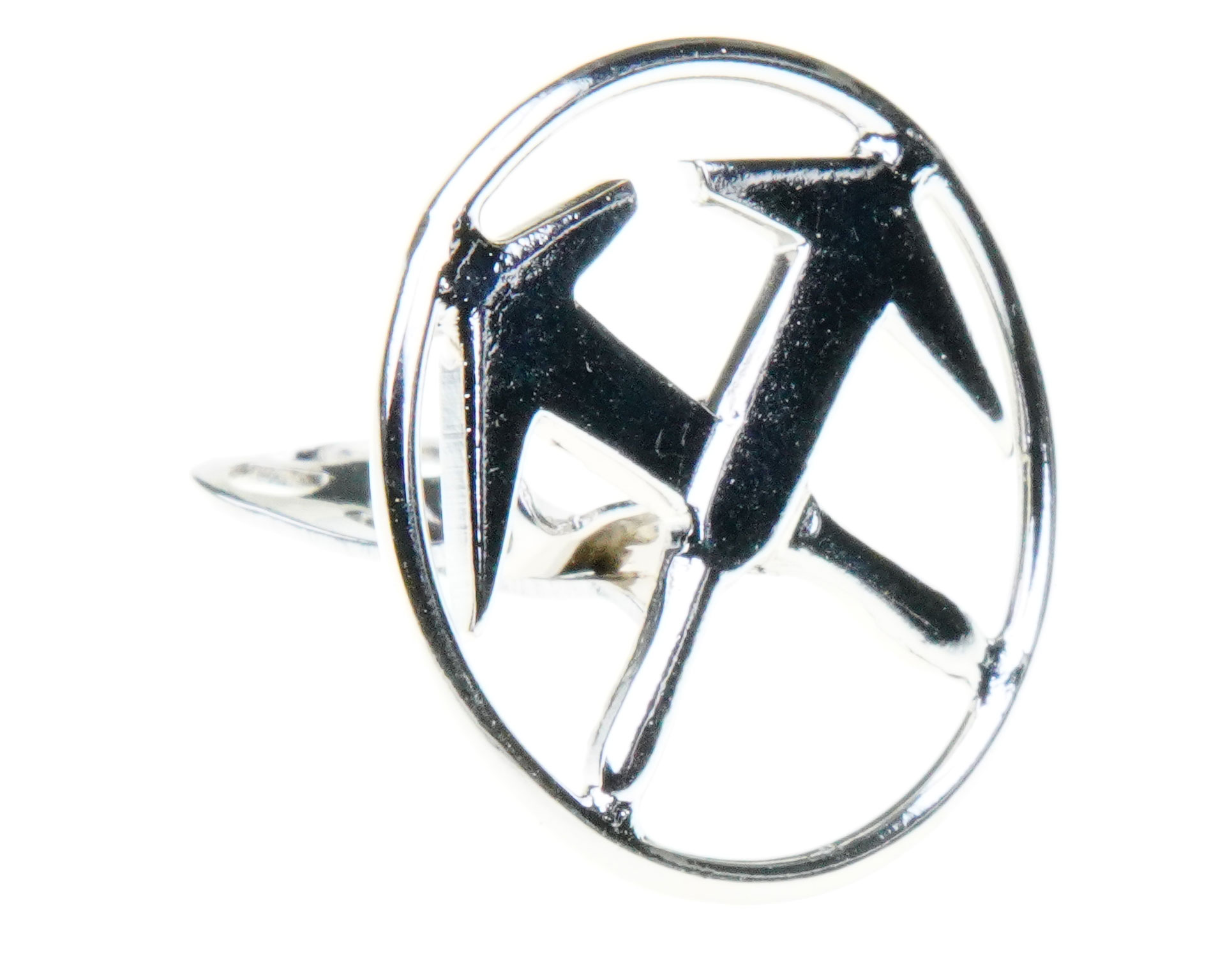 Das stolze Zunftzeichen der Dachdeckerzunft (Schieferdachdecker) aus zwei gekreuzte Schieferhämmern in einen Ring. In der Zunftkleidung wurde der Dachdecker Ohrhänger auf der Walz getragen. Natürlich wird er auch zu allen anderen Anlässen und auf der Arbeit gerne getragen.