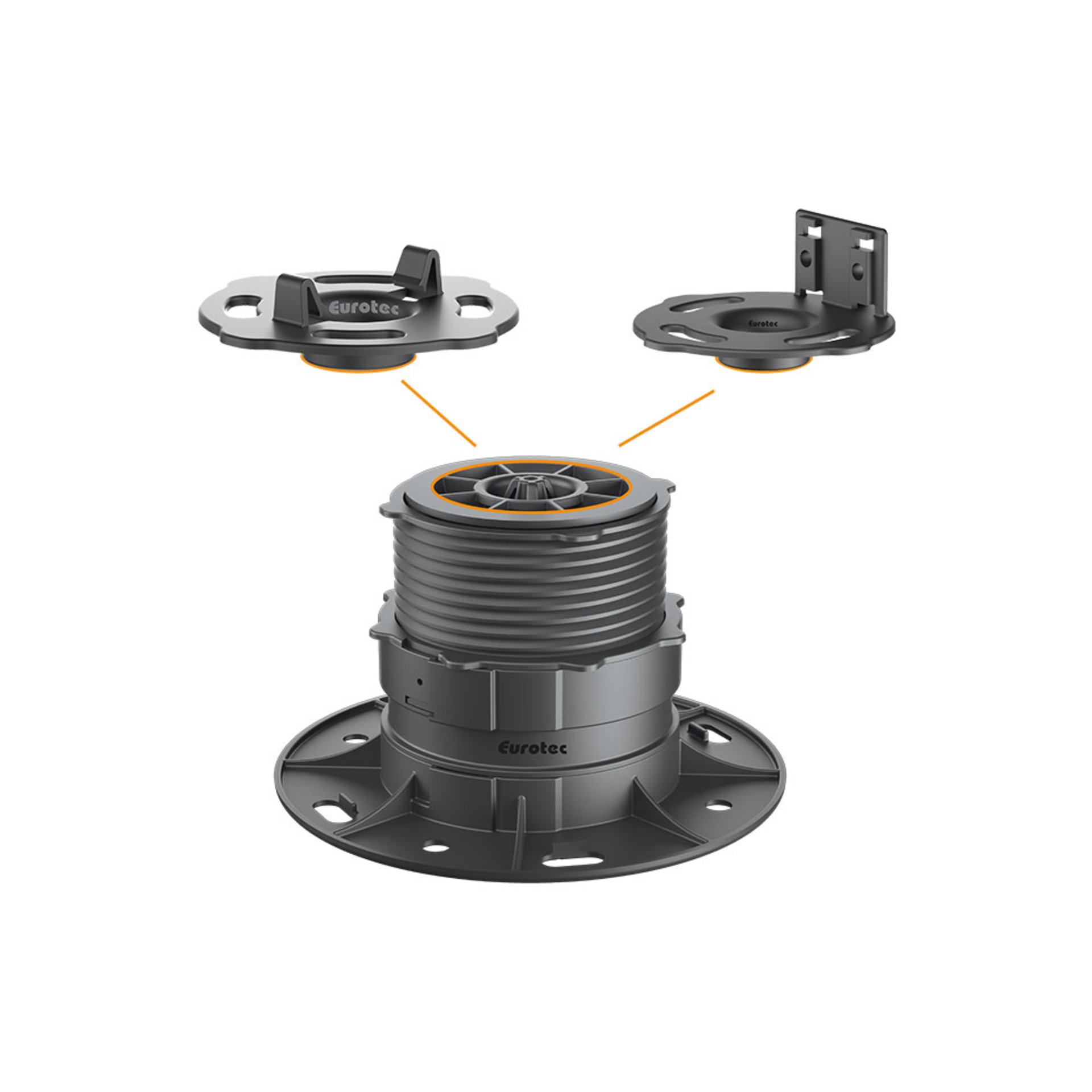 Der Eurotec Verstellfuß SL PRO L eignet sich für die Verlegung von Terrassenunterkonstruktionen für den Außenbereich.
