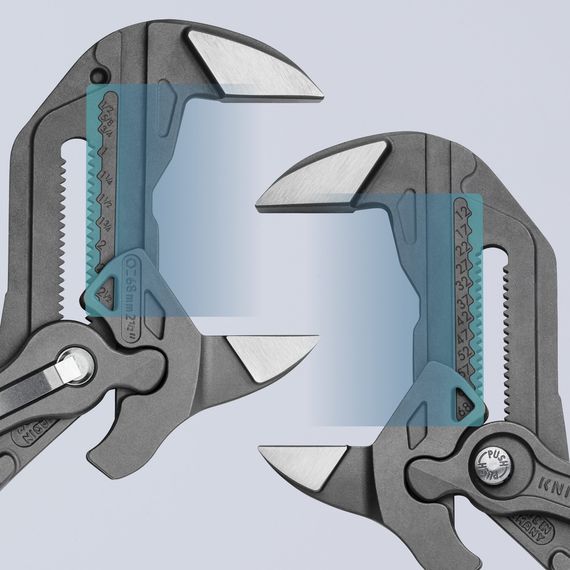 Eigenschaften "KNIPEX 86 01 300 Zangenschlüssel Zange und Schraubenschlüssel in einem Werkzeug mit rutschhemmendem Kunststoff überzogen grau atramentiert 300 mm"