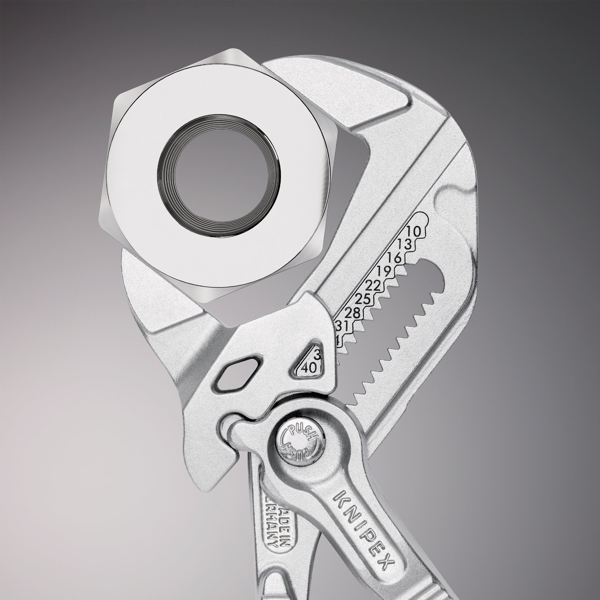 • Patentrechtlich geschützte Mechanismen: Zum Beispiel die einfache und sichere Verstellbarkeit der KNIPEX Cobra®-Zangen.