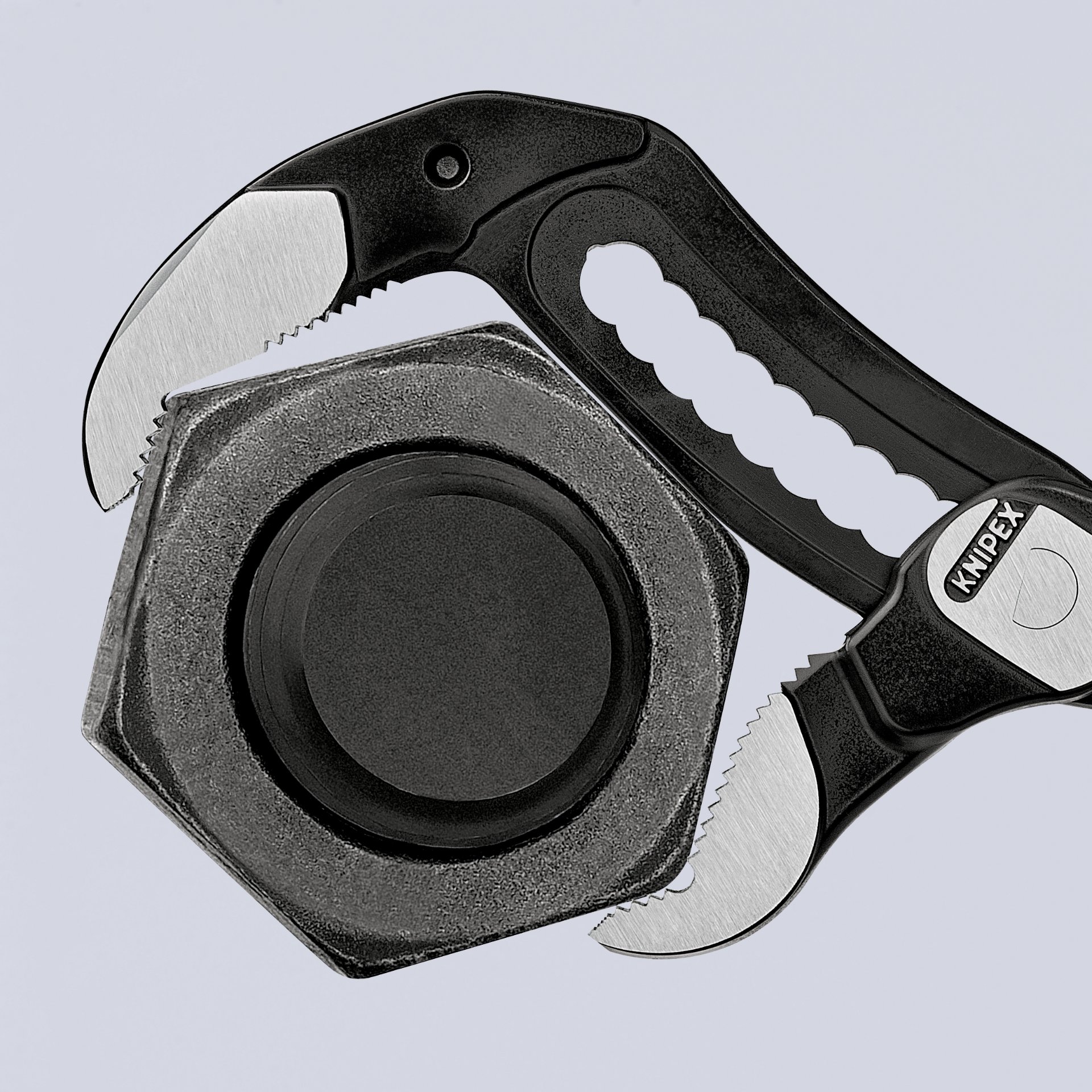 Patentrechtlich geschützte Mechanismen: Zum Beispiel die einfache und sichere Verstellbarkeit der KNIPEX Cobra®-Zangen.