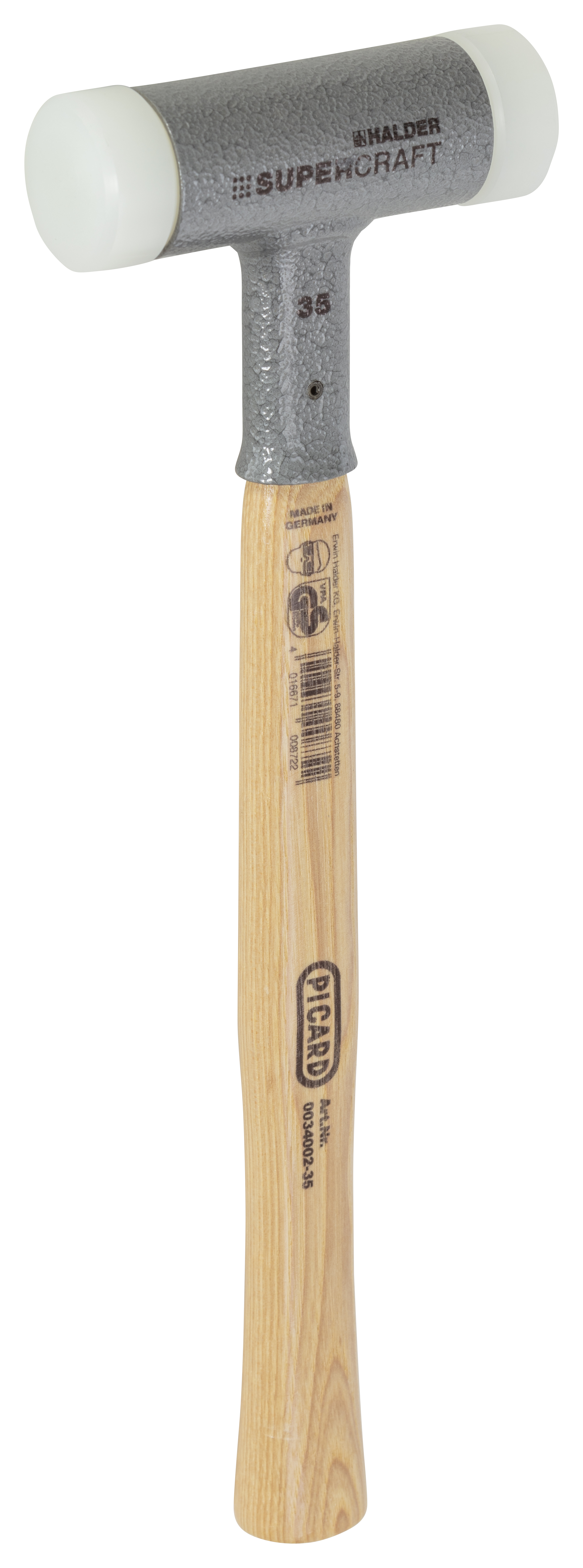 mit poliertem, lackiertem und geschweiftem Hickorystiel, Kopf aus schlagfestem Nylon, natur